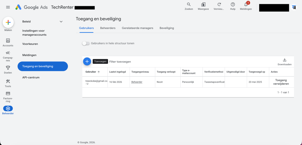 Een beheerder in Google Ads heeft uitgebreide rechten om campagnes aan te maken, te optimaliseren en rapporten in te zien. Dit is handig als je samenwerkt met een professional die jouw advertenties wil beheren en verbeteren.